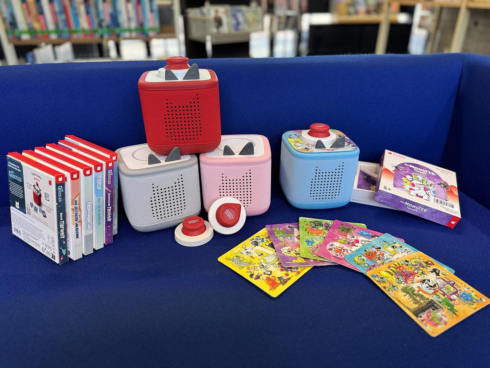 Ab sofort können Sie bei uns die neue Toniebox 2 und insgesamt 15 Tonieplay Games kostenlos ausleihen. Aktuell stehen vier der neuen Tonieboxen in den Farben Mondgrau, Himmelblau, Rosa und Rot zur Verfügung. Alle Tonieboxen werden jeweils mit einem Tonieplay Controller verliehen, der zum Spielen der Tonieplay Games benötigt wird. Die Spiele richten sich an Kinder ab 3, 5 oder 7 Jahren und sorgen für echten Spielspaß ganz ohne Bildschirm – gemeinsam mit der Familie oder auch allein. Die Toniebox 2 kann zudem auch ausschließlich zum Anhören unserer Toniefiguren genutzt werden.