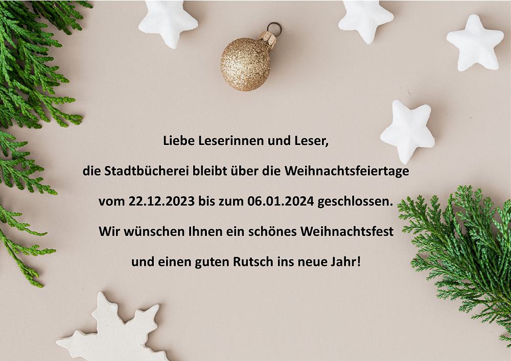 Außerdem bleibt die Stadtbücherei vom 24.12.2017 bis zum 01.01.2018 geschlossen!